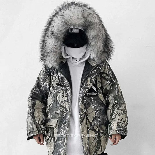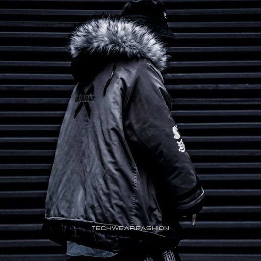 Techwear Cargo Jacket with Fur