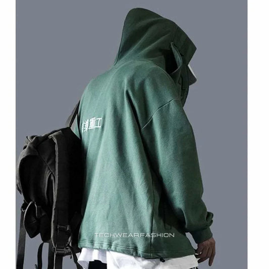 In terms of fit, techwear hoodies are often loose fitting and offer great freedom of movement. Techwear hoodies often have a large hood that covers the entire head and gives a cyberpunk look. Depending on the garment model, there may or may not be a stand-up collar for absolute camouflage. In addition, some innovative sweatshirts have a zippered hood.
