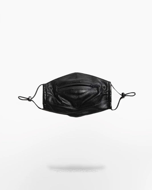 Techwear Leather Mask with Zipper Mouth